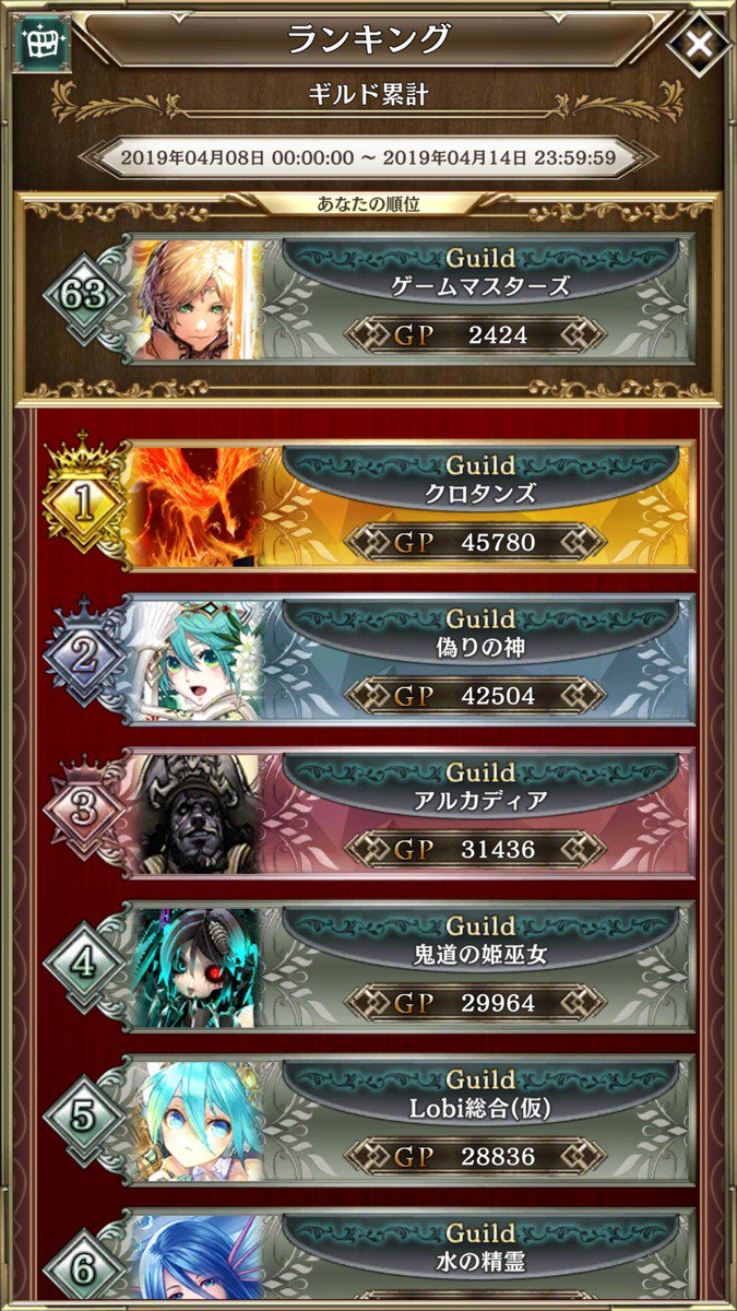 “🏆#アルネオ ギルドランキング 結果🏆 ギルドイベント選抜戦の結果は以下となります🌟 1位「クロタンズ」 2位「偽りの神」 3位「アルカディア」 最後の最後まで白熱したギルドイベント選抜戦になったかと思います! 次はいよいよ本戦になります! 本戦開始日時は後日発表いたします😊”